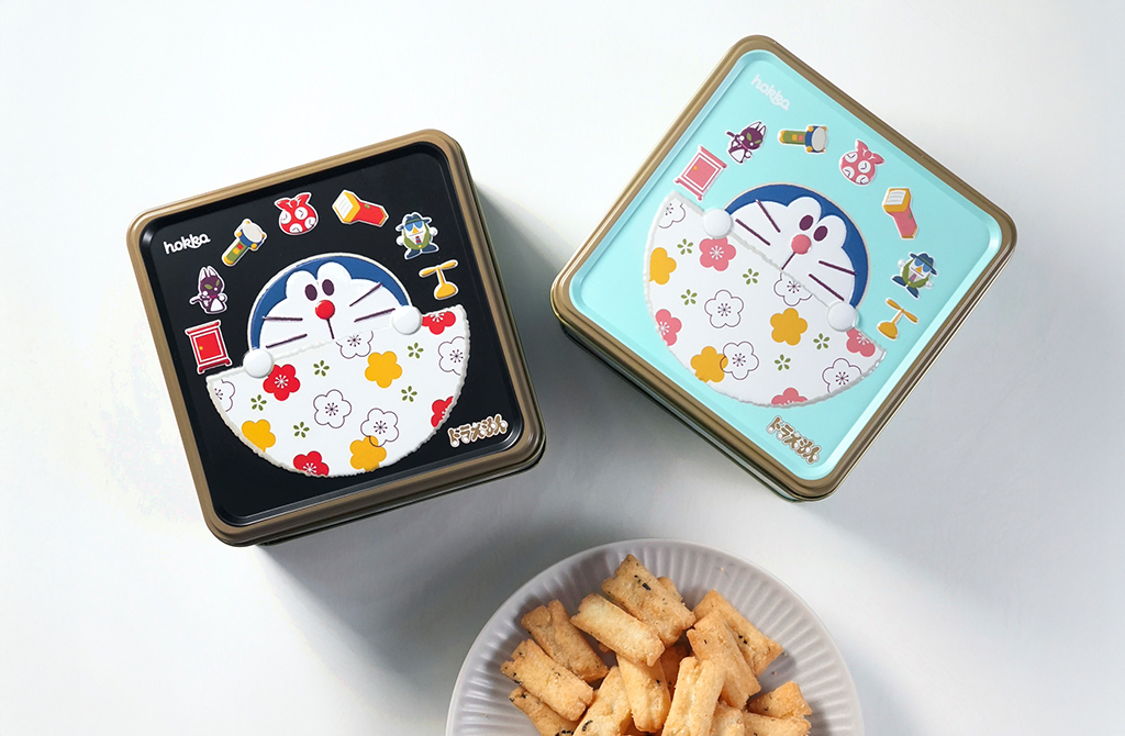 北陸の揚げあられ「ビーバー」に、ドラえもんのオリジナルデザイン缶が新発売!日本らしい和柄を取り入れたデザインの缶の中には、北陸限定の人気フレーバー「白えびビーバー」が入っています。富山産白えびを使用し、上品な昆布の旨みとサクッと軽い食感を楽しめます。缶のフタは立体的なエンボス加工になっていてぷっくりかわいい♪黒、水色の2色展開で発売中!