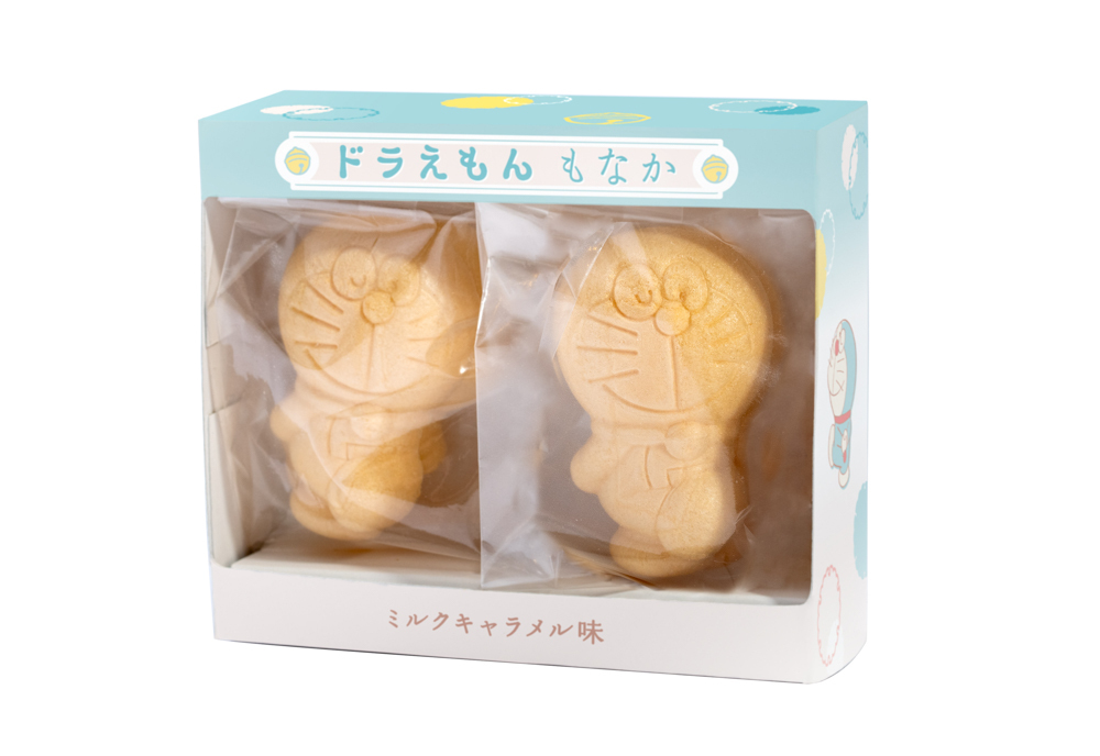 3F「ギフトコーナー藤子屋」に新登場!人気フォトスポット3F「はらっぱ」の「おでむかえドラえもん」が手作り最中に!別添えのミルクキャラメル味の餡をドラえもん型の最中にはさんでお召し上がりください。