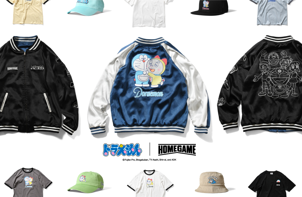 ドラえもんとセレクトショップHOMEGAMEによるアパレルコレクションが登場。背中にドラえもんとドラミの大判刺繍を施した表面と、BLACKベースのモノトーンで統一した裏面を楽しめる本格リバーシブルスーベニアジャケットをはじめ、柔らかい色合いで仕上げたリンガーTEEや、シンプルで幅広いシーンにマッチするハットなど、世代を超えて愛されるアイテムを展開。その他にも魅力的な商品が多数ラインナップしています。詳しくはHOMEGAMEの特設ページをチェックしてね♪