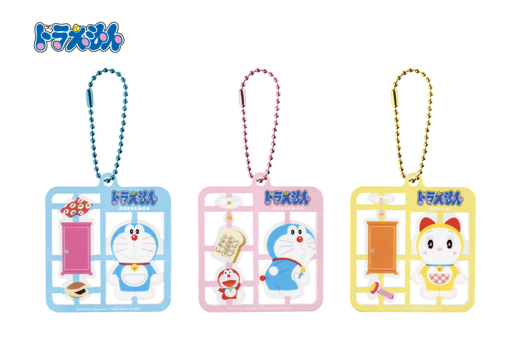 ドラえもんやドラミちゃんをプラスティックモデル風にしたキーホルダーが新発売!立体感のある繰り抜き仕様!おなじみのひみつ道具もデザインされています♪