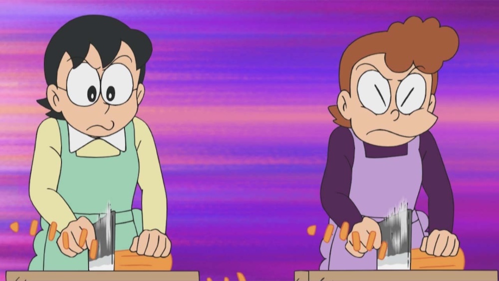 その直後、買い物に出かけたママは、道で会ったスネ夫のママに挑戦(ちょうせん)的な態度(たいど)を取り、スネ夫のママもそれに応戦(おうせん)。二人とも夕ご飯はカレーだと言うと、スーパーに向かって走り出して…!?