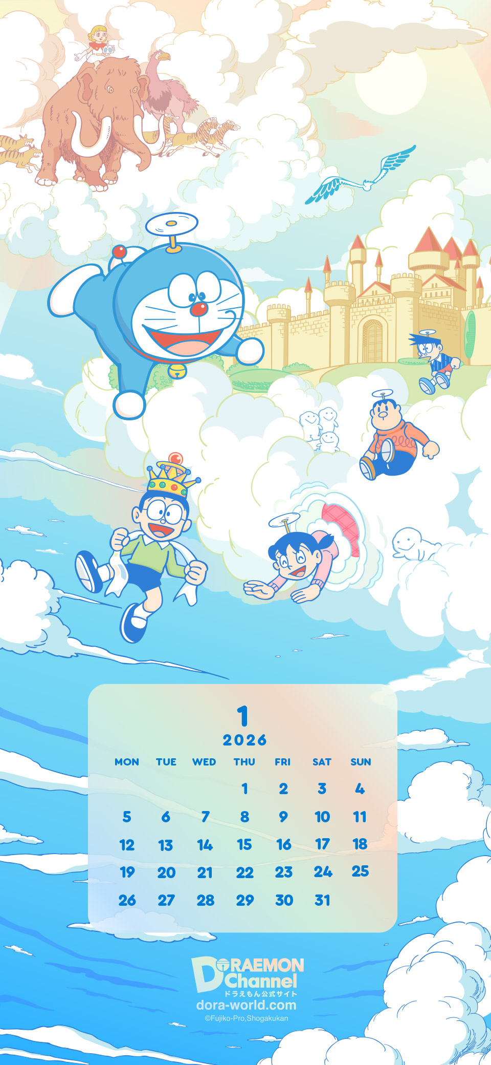 大好評のドラえもんチャンネルオリジナルかべがみに、スマートフォン専用のカレンダー付きかべがみが登場しました!ダウンロードして使ってね♪