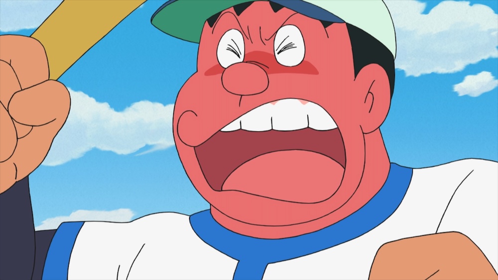 野球の試合で大差をつけて負けてしまったことに怒(いか)り心頭のジャイアン。その様子を見たのび太たちは、その場からあわててにげ出し、家から出ないことに。そんなのび太にあきれるドラえもんだったが、道で会ったジャイアンから、言いがかりをつけられ、追いかけられてしまう…。