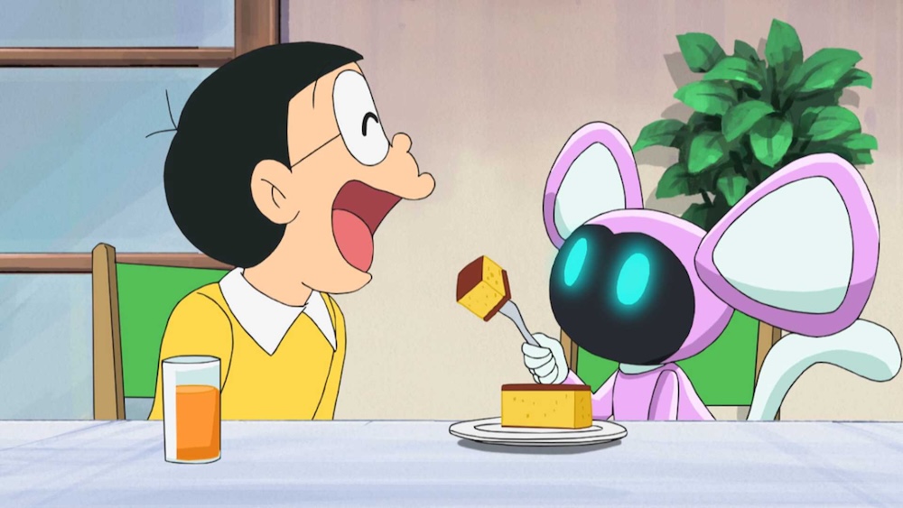 最初は思った通りにいかなかったものの、エーアイアイを外に連れ出して、ジャイアンやスネ夫のことを教えこんだり、しずかの家に連れて行って説明するのび太。さらに、ママが来たら伝えるようにと、自分に都合のいいことばかりエーアイアイに教えこむ。