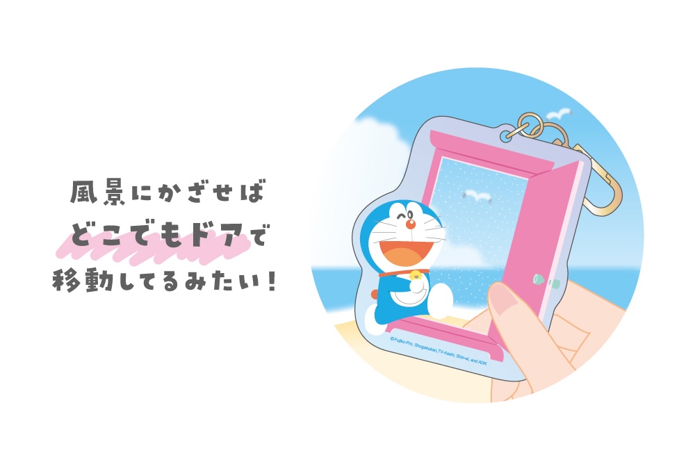 「どこでもアクリルキーホルダー」は、キーホルダーをかざすと、「どこでもドア」の世界の中に!ドアの向こうがアクリルで透けているので、風景にかざすとどこでもドアを開いて移動しているみたい!ドラえもんやドラミちゃんと一緒にどこでもドアでお出かけできるキーホルダーです♪