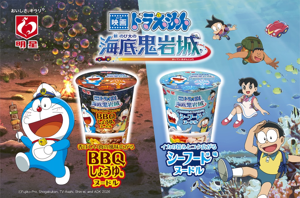 『映画ドラえもん 新・のび太の海底鬼岩城』の世界観を楽しめるカップラーメン2品が明星食品から新登場!