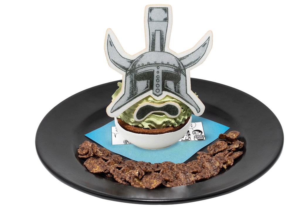 『大長編ドラえもん のび太の海底鬼岩城』に登場する「ポセイドン」をモチーフにした迫力満点のスイーツメニュー!香り高い宇治抹茶を贅沢に使用した抹茶ムースを、プリンタルトに重ねました。抹茶ムースの中には、プチシュークリームが隠れています。