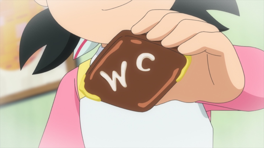 次の日、ポストにチョコが入っていたことをうれしそうにみんなに報告(ほうこく)するスネ夫。スネ夫が持っていたチョコを見たのび太は、しずかからではないかと言うが、スネ夫はイニシャルが“WC”だからちがうと言いはる。しずかなら“SM”になるからだ。