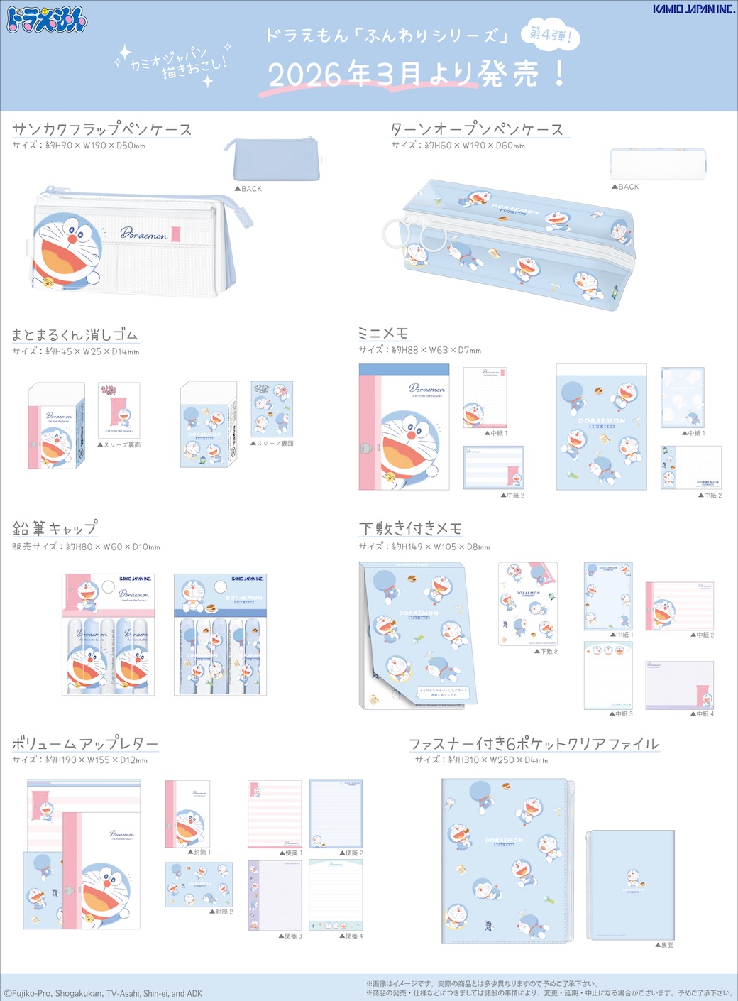ふわふわでまんまる♪柔らかいタッチのドラえもん「ふんわりシリーズ」第4弾のグッズが3月上旬より登場!ふわふわなドラえもんたちに癒されちゃおう!