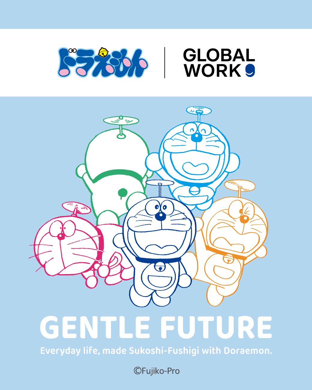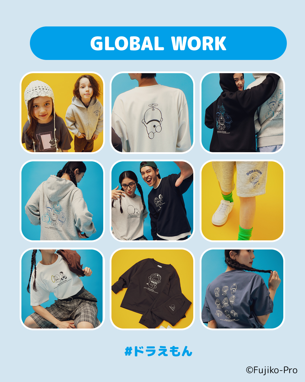 「GLOBAL WORK」から、「ドラえもん」を線画と優しいカラーリングでデザインした、家族で楽しめるアパレルアイテムが2026年3月5日(木)より登場します。