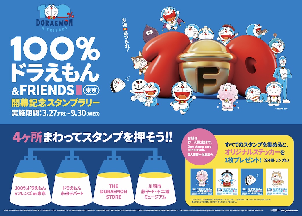 『100%ドラえもん&フレンズ in 東京』の開幕を記念して、3月27日より『100%ドラえもん&フレンズ 開幕記念スタンプラリー』を実施します。