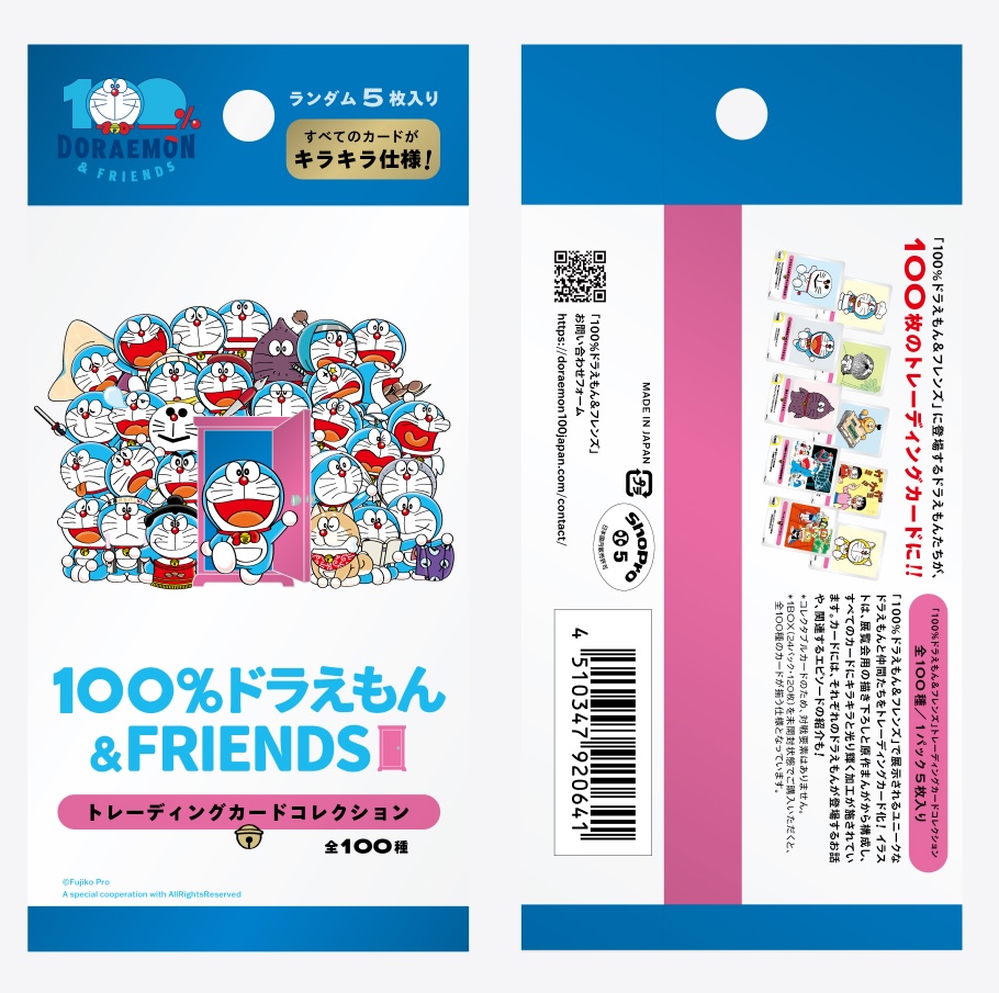 『100%ドラえもん&フレンズ in 東京』 では、会場限定商品として、「100%ドラえもん&フレンズ トレーディングカードコレクション」(1パック5枚入り・全100種/24パック入り1BOXには全100種入り)を販売いたします。