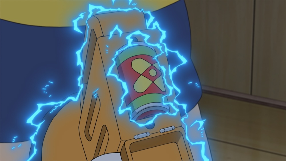 ほかの電気器具の電池も変えようとするのび太だったが、力が強すぎるからダメだとドラえもんに取り上げられてしまった。しかし、のび太はロボットに入っていたウルトラスーパー電池を取り出すと、ドラえもんの首輪の中に差しこんでみる。すると、電池がそのままドラえもんの中に入ってしまったから大変! 全身から蒸気(じょうき)を出して飛び上がったドラえもんは、そのまま走り出していき…!?