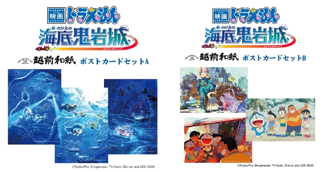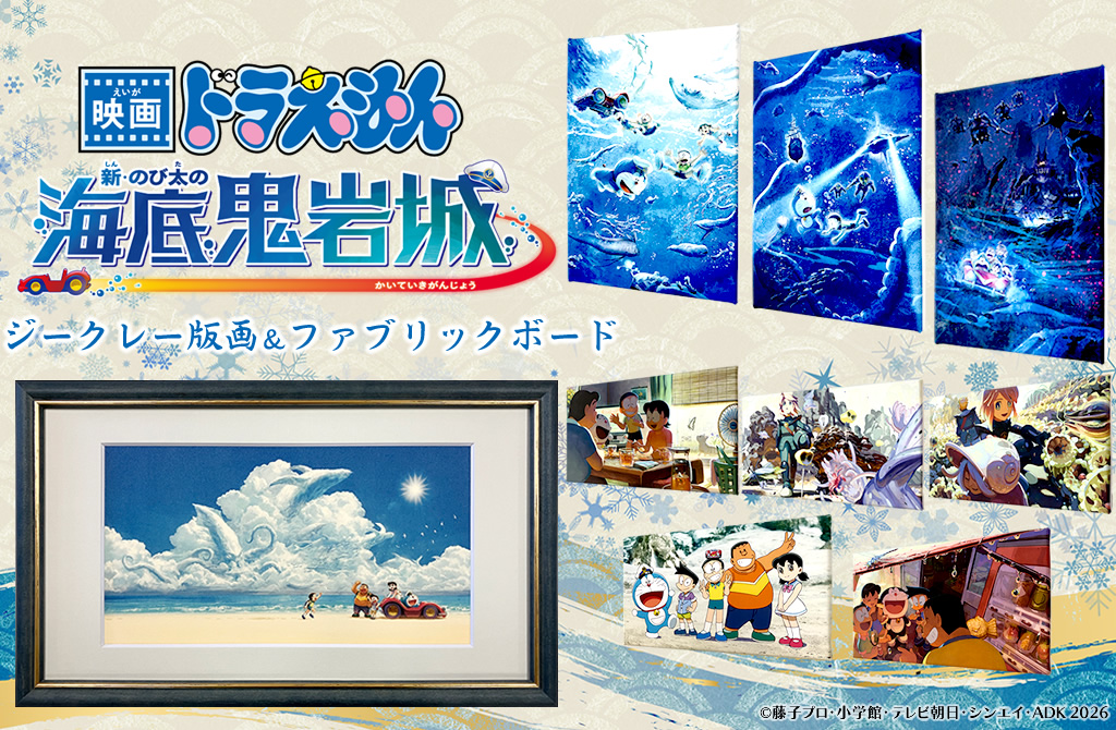 『映画ドラえもん 新・のび太の海底鬼岩城』の劇場バナービジュアルやエンドロールなどのイラストがジークレー版画、ファブリックボード、越前和紙ポストカードになりました!版三のオンラインショップ「浮世絵工房」にて、4月24日(金)より販売開始!また4月28日(火)より「ドラえもん未来デパート」での販売もスタートします。