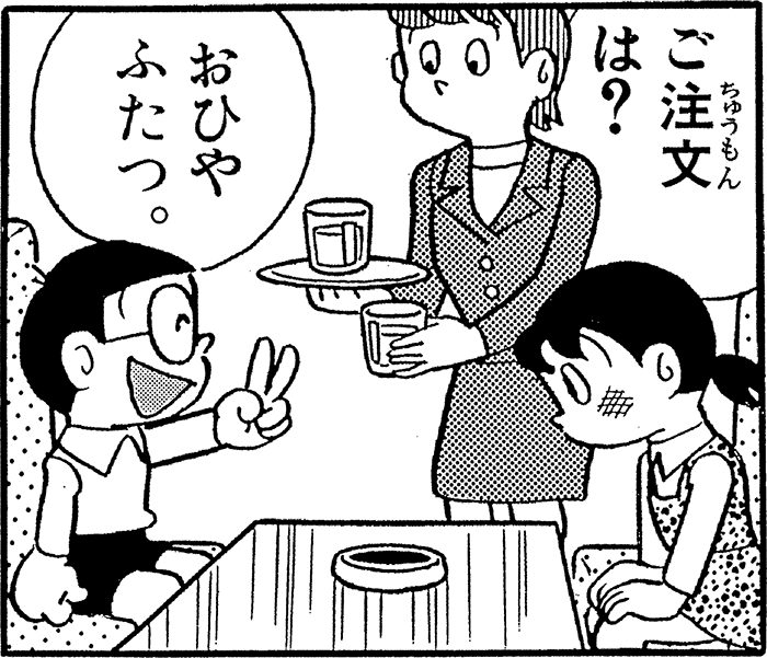 1888年(明治21年)のこの日、東京・上野に日本初の喫茶店「可否茶館」がオープンした。 どこへでも入れるしなんにでも乗れる「オールマイティーパス」を使って、のび太はしずかちゃんと喫茶店に。でも、お金はないので注文は「おひやふたつ」。 (15巻「オールマイティーパス」)