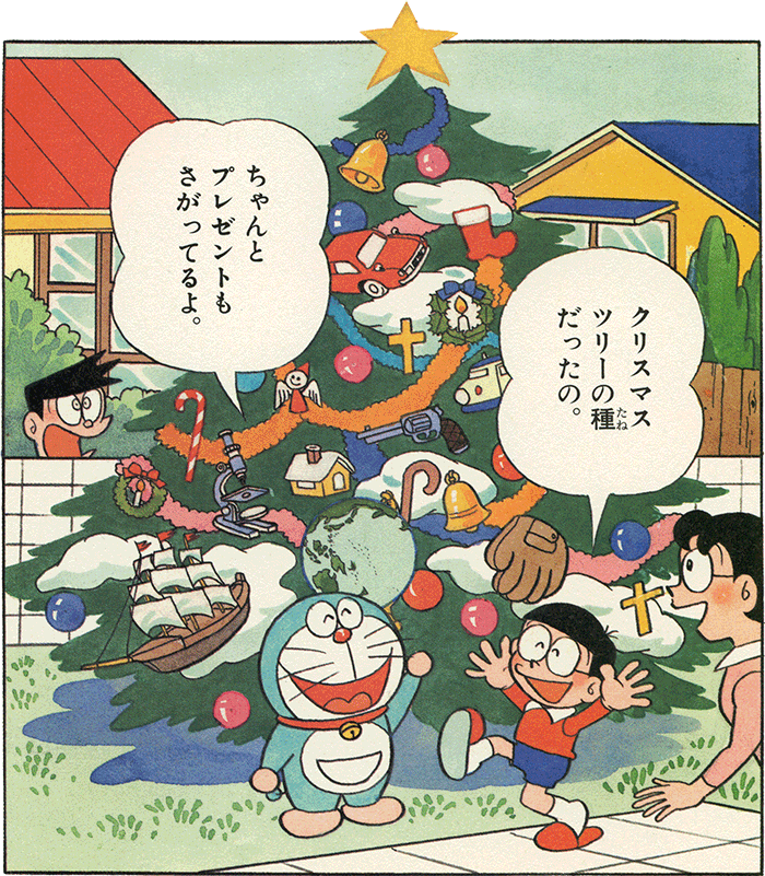 1886年(明治19年)のこの日、横浜の明治屋で日本初のクリスマスツリーが飾られたことから。 のび太が庭にまいたふしぎなタネから生えたのは、プレゼントをどっさりとつけたクリスマスツリー! (カラー5巻「クリスマスツリーの種」)
