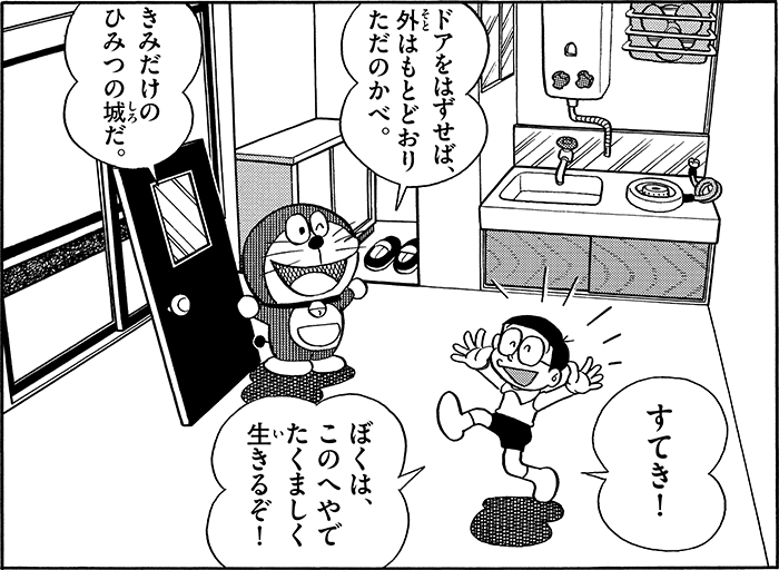1910年(明治43年)のこの日、東京・上野に日本初の木造アパート「上野倶楽部」が完成。5階建て、70室だった。 家から独立したいというのび太。ドラえもんはのび太の独立心に応え、壁に貼るだけで部屋ができる「ナイヘヤドア」を出して応援する。 (15巻「ナイヘヤドア」)
