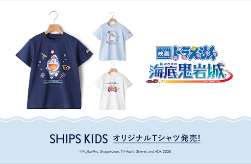 『映画ドラえもん 新・のび太の海底鬼岩城』SHIPS KIDS限定オリジナルTシャツが登場!