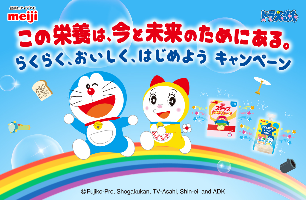 ドラえもんが、幼児期の不足しがちな栄養をサポートする「明治ステップ」と「明治ミラフル」のWEB CMに登場!