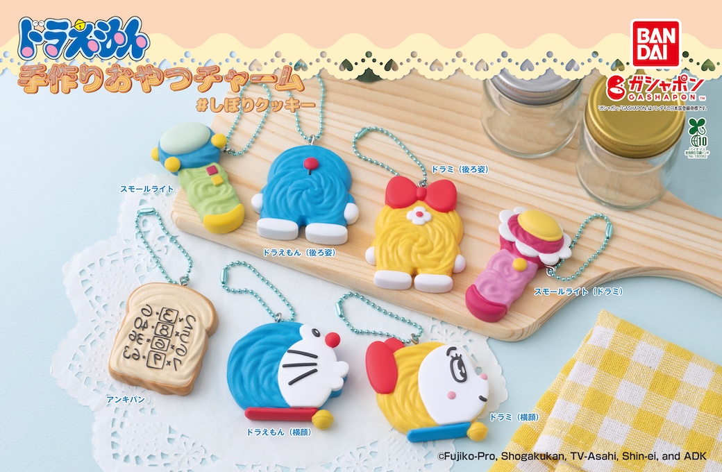 まるで本物のクッキーみたいな可愛いチャーム♪ガシャポンの人気シリーズにドラえもんの『手作りおやつチャーム』が新登場!思わず食べたくなっちゃうような、手作りクッキーの絞りをしっかりと再現した大きめのチャームです。ラインナップはドラえもん、ドラミちゃんのチャーミングな横顔や後ろ姿に、ひみつ道具を加えた計7種♪ おもわず集めたくなっちゃいそう!