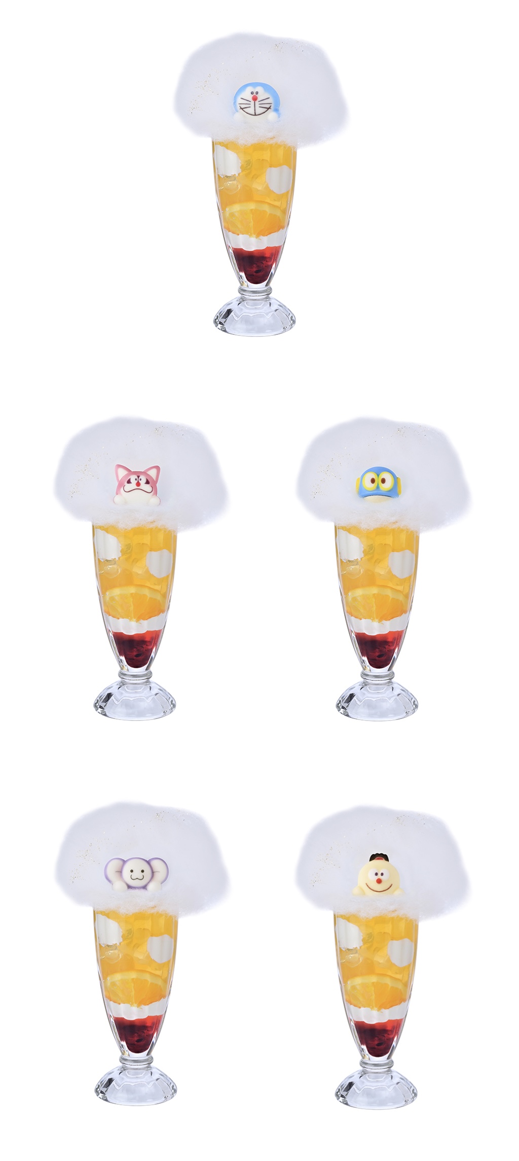甘酸っぱいさわやかなオレンジクリームソーダにブルーベリーソースをアクセントに効かせ、新年を祝う新しいハーモニーに仕上げました♪初日の出のようなオレンジと、きらめく雲がおめでたい、橙色のグラデーションが鮮やかなドリンクです。トッピングのマシュマロは、「ドラえもん」のほか「パーマン1号」「チンプイ」「コロ助」「ポコニャン」からお選びいただけます。