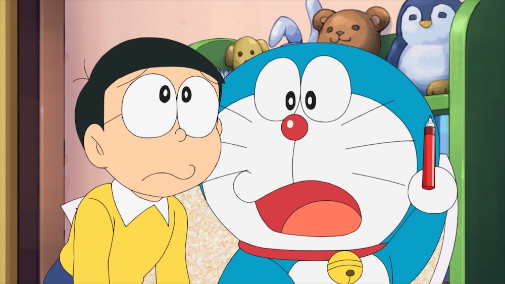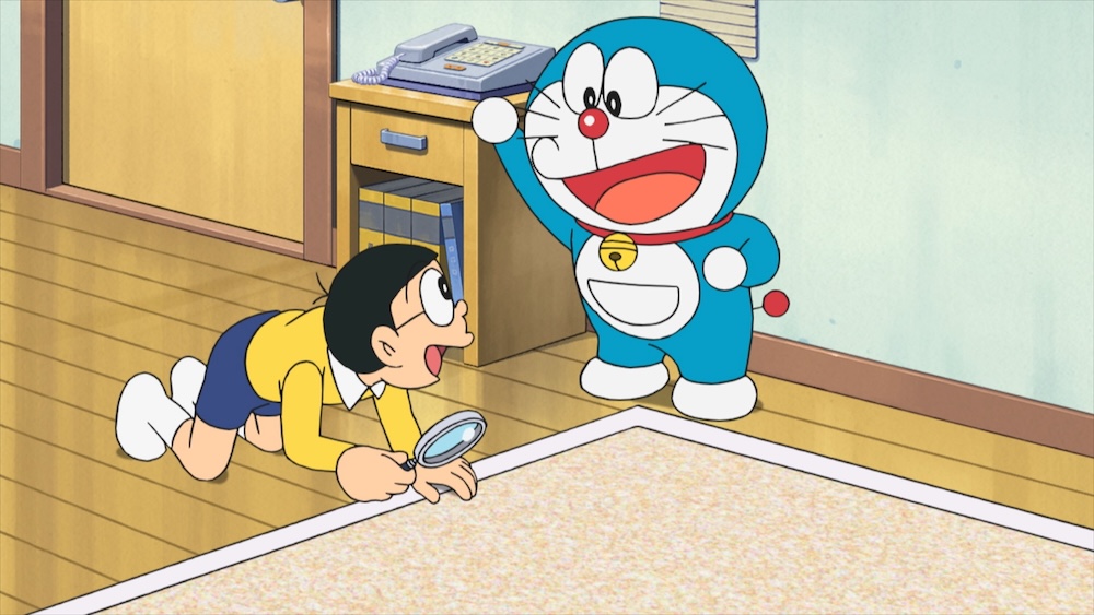 1分で行けるというドラえもんの言葉を信じられないのび太だったが、ろうかに出ると二人のすがたはなくなっていた…。そして、空中を舞(ま)っていた紙の切れはしが、回転しながら1まいの大きな丸まった紙になり、その中からドラえもんが出てきたからビックリ!