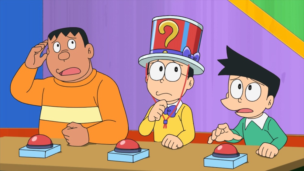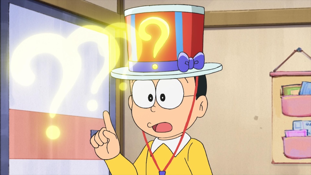 ところが、たよりにしていた出木杉はカゼをひいて寝(ね)こんでいた…。こまったジャイアンたちの前に、モノシリハットをかぶったのび太があらわれる。のび太の出すクイズにまったく答えられない二人は、のび太を連れてクイズ対決にいどむが…!?